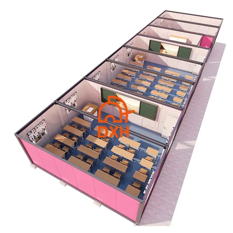 DetailsDXH House's flat pack container school buildings provide ready-to-use learning and office spaces for students and educators. Our prefabricated container structures eliminate the lengthy construction cycles and site disruptions associated with traditional buildings. DXH House offers two standard container house sizes: 20-foot or 40-foot, and we also offer customizable container layouts. Our service commitment is to provide you with a fast-deployed, durable, and high-quality modular container school building.